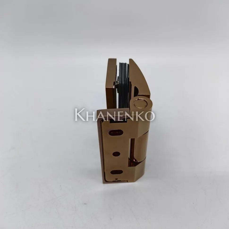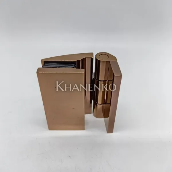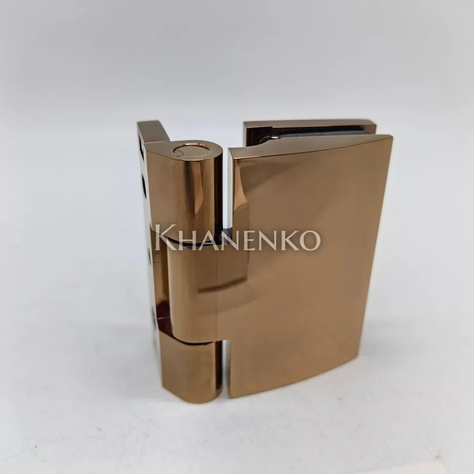 Петля для стеклянной двери Европа, стена-стекло 90°, с декоративными крышками. Выполнена из высококачественной латуни в отделке Розовое золото. Премиальное качество.